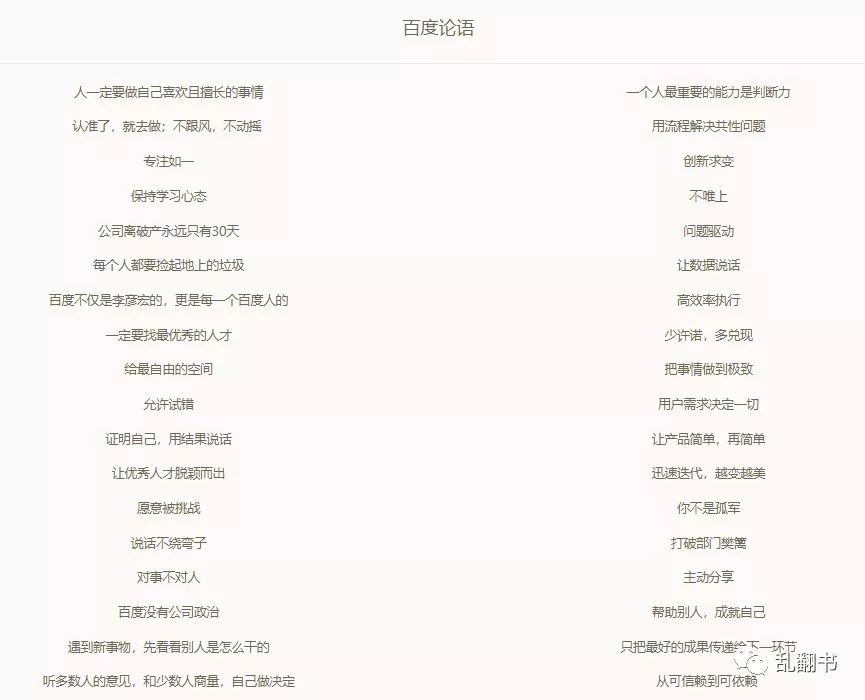 百度新人入职都要发两样东西,《百度论语》和《壹百度》,其中《百度论语》还挂在了百度的公司官网上。