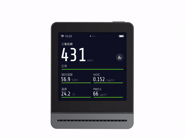 PM2.5 是一定要有的,但一个好的空气检测仪必须还能检测二氧化碳和 tVOC(总挥发性有机物)。