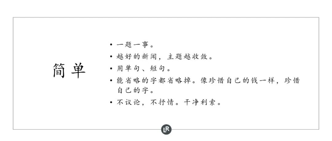 怎样才能让文字做到简单呢?其实还有一种硬性的规定,就是在写消息的时候不议论。