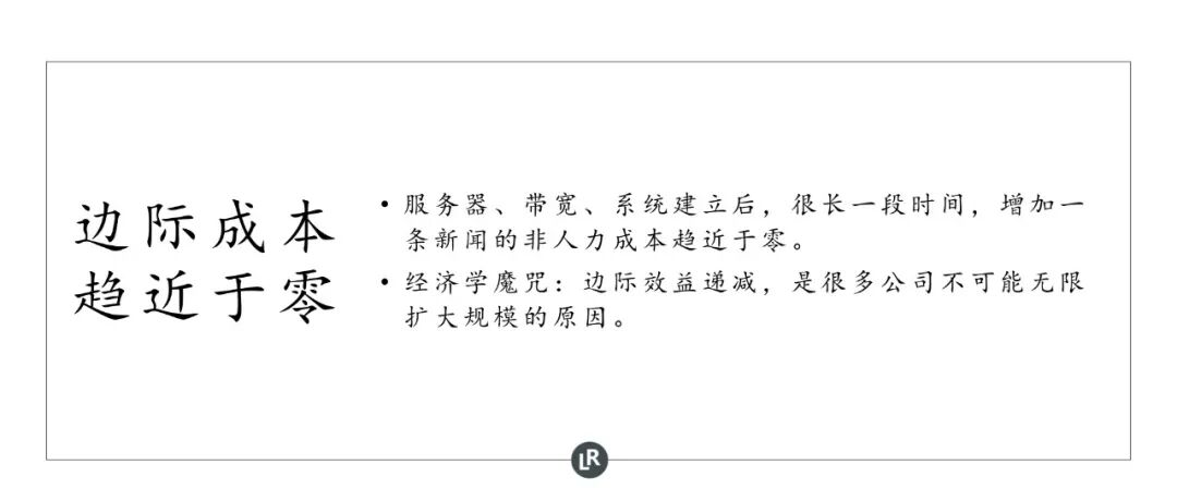 举个最简单的例子。2000年,新浪、搜狐、网易刚上市时,很多人不明白为什么能上市?因为上市前它们都亏得一塌糊涂,都是不赚钱的媒体。并且2000年左右,他们的广告收入还非常有限。之所以能上市,其实就是看重了“边际成本趋于0”这个特点。