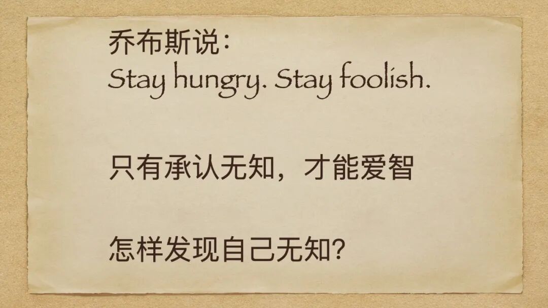首先,知道自己无知在哪,才是有知识的开始。我反反复复读过10多遍的,只有《论语》这本书。《论语》说“知之为知之,不知为不知,是知也。”孔老夫子讲的太平和,不惊人,大家也就没那么在意。乔布斯说“Stay hungry. Stay foolish.”乔布斯希望自己能保持饥渴,保持愚蠢。意思与孔夫子差不多。西方人还说,哲学的本意是爱智慧。你要是认为自己有智慧,你还会追求智慧吗?还会去爱智慧吗?你只会显摆你的智慧。想要追求智慧,必须先承认自己没智慧。